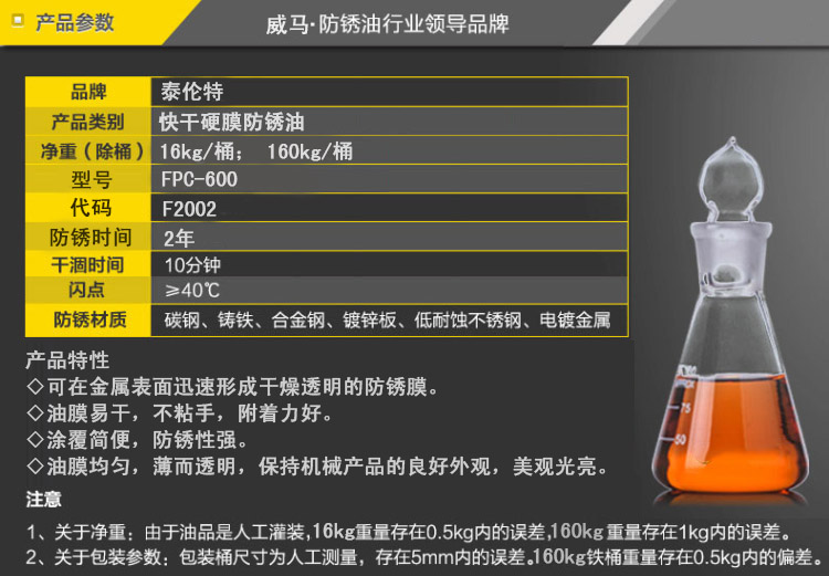 泰倫特 FPC-600 硬膜防銹油代碼F2002
