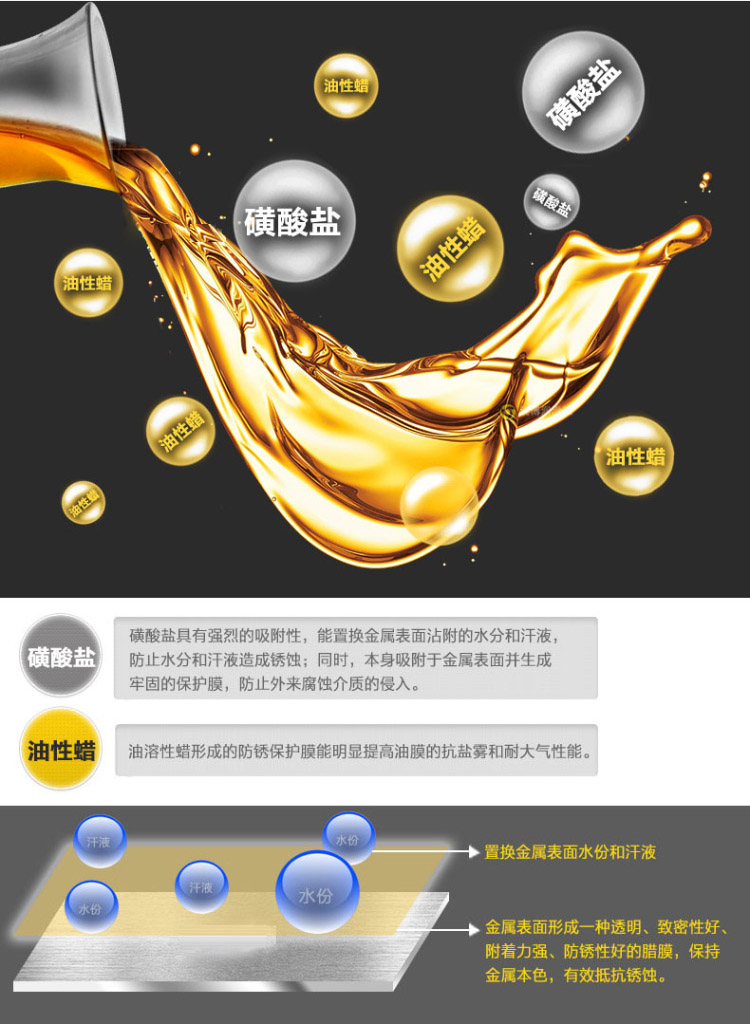 ◇本產品不宜在機械活動部位及金屬重疊面上使用,有盲孔和小孔的零件務必使孔內表面也涂上油膜。