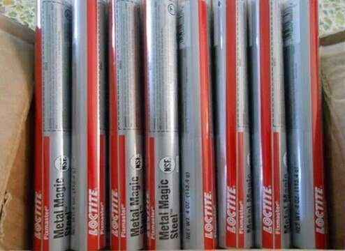 鋼粉的棒狀環氧膠,用手揉勻后填入間隙或孔洞即可堵漏,適用時間3分鐘,初固 時間為10分鐘。固化后可以進行鉆孔、攻絲、涂油漆。適用于水箱及管道泄露的緊 急密封修補,可用于鋼鐵材料壓力低于0.3MPa工況下堵漏。能夠對焊縫進行平填; 對鑄件的小開裂進行修補。對過大的螺栓孔進行填充。