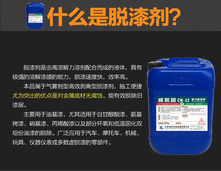 1、威脫固CW-22脫漆劑不燃燒,無毒害,不損傷金屬零件。